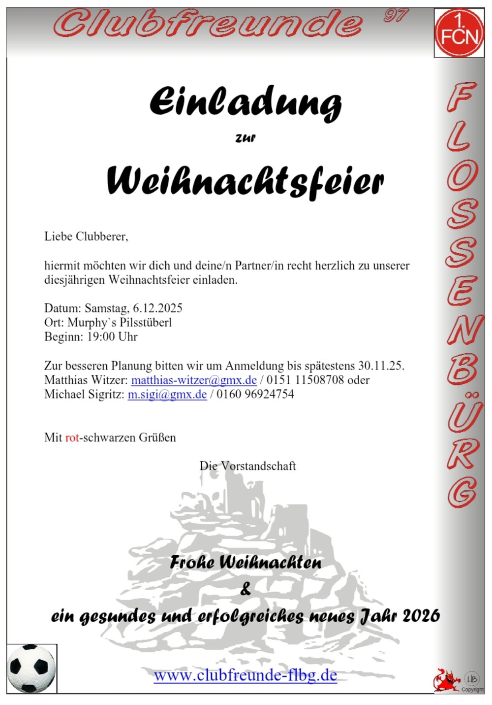 Samstag, 06.12.: Weihnachtsfeier beim Murphy (siehe Einladung)